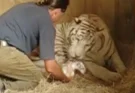 White Bengal Tiger Mom trust a man with her newborn cubs
