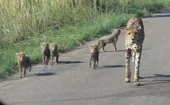 Earlier today, I witnessed an unforgettable sight in Kruger National Park — a mother cheetah walking right down the main road with her five adorable cubs in tow. It was …