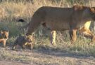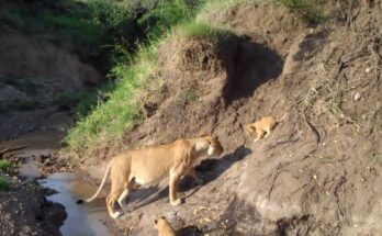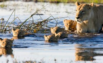 Tiny lion cubs and Lion Family Tries to Cross River  Read More