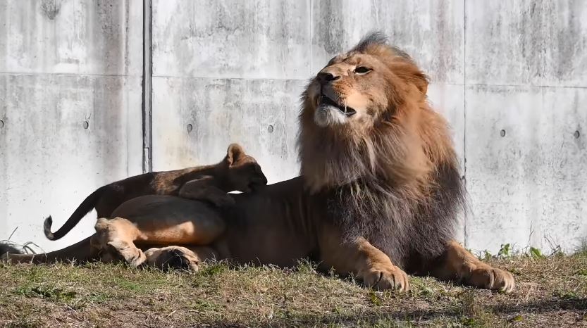 The father eventually accepted his fate, lying still as the cub poked his ears and tugged his whiskers, proudly enduring the chaos. The moment became a heartwarming reminder that even the king of beasts is no match for the unstoppable energy of a playful cub.