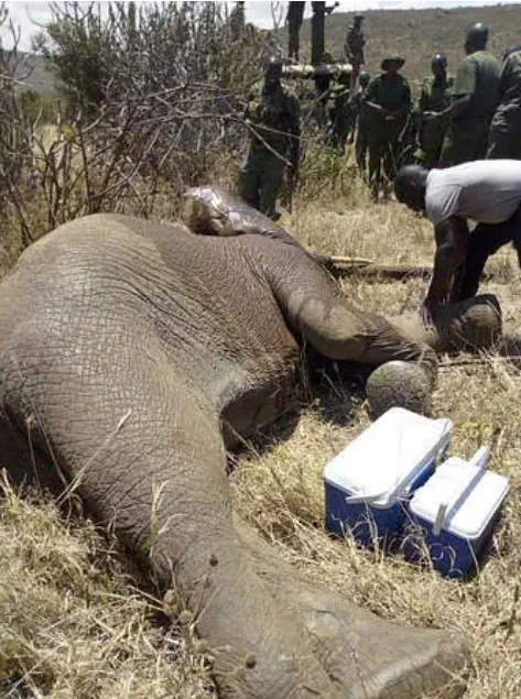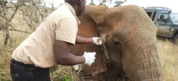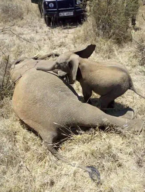 As they neared the pair, the decision was made to sedate the mother elephant to ensure she could receive the medical attention she so desperately needed. The rescue team had to act quickly but cautiously. Darting from a distance, they administered a 15mg dose of etorphine HCl, a powerful tranquilizer used to safely sedate large animals like elephants. The sedative worked swiftly, allowing the team to approach her more closely and begin their examination.