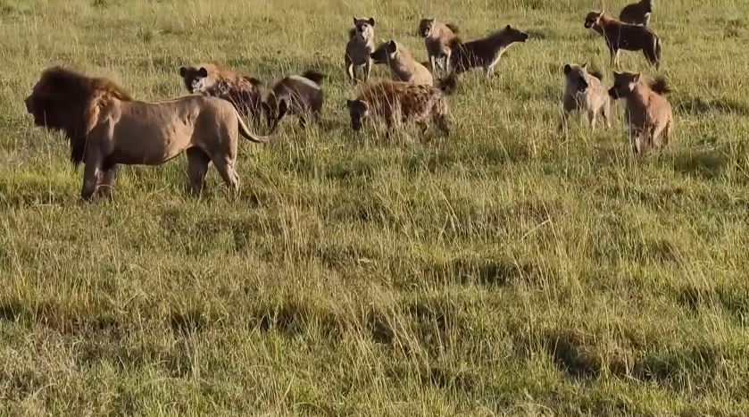 A Lion King Finding Himself Surrounded by 30 Hyenas — Guess Who Won?