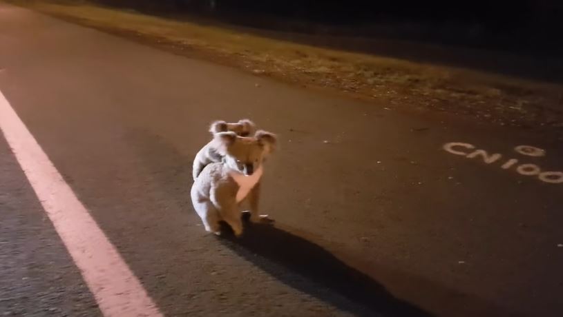 Koalas are nocturnal animals, and it’s not unusual for them to cross roads at night in search of food or a new habitat. However, such encounters are becoming more common due to habitat loss and urban expansion. Roads and vehicles pose a serious threat to their safety. Fortunately, in this case, the driver showed patience and respect, waiting until the koalas eventually made their way off the road and back into the bush.