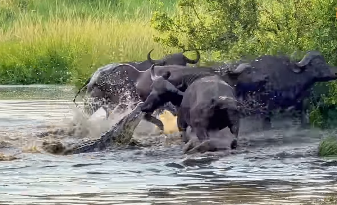 In the end, strength prevailed. The buffalo broke free, and the crocodile slipped back into the water. Buffalo: one. Crocodile: zero.