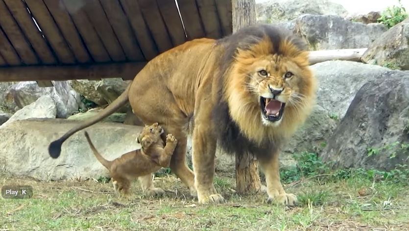 At Nonhoi Park, a quiet and heartwarming moment unfolds within a lion family, revealing the gentle side of the wild. Father Earth moves with calm dignity across the grass, his powerful frame steady and unhurried. Beside him, a tiny shadow keeps close — one of his triplet cubs, Den, Al, or Vega — padding carefully at his feet as if drawn by an unspoken need for comfort and reassurance. The cub’s small steps mirror Earth’s larger ones, expressing a simple wish to remain near, to feel safe within the presence of strength and familiarity.
