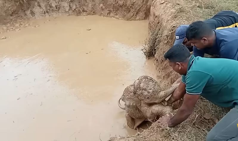 In a touching display of compassion and teamwork, a baby elephant was recently rescued after falling into a deep pit, bringing joy and relief to animal lovers worldwide. The dramatic event unfolded near a wildlife reserve where villagers heard distress calls echoing through the forest at dawn. Following the cries, they discovered a frightened young elephant trapped and struggling to climb out of a muddy hole.