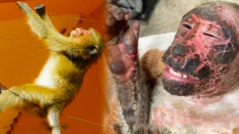 Rescuers rushed to the scene, gently lifting the injured monkey. His tail and hands were scorched, his breathing shallow. He was taken to a veterinary clinic, where specialists worked quickly to treat the burns and stabilize his fragile condition. For hours, his survival was uncertain.