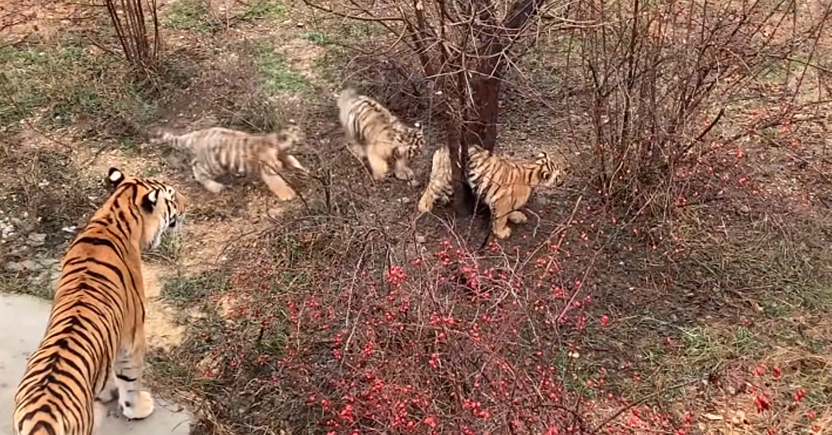 It was a sunny afternoon at the city zoo, and the tiger family was enjoying their time in the spacious enclosure. The tiger parents—Raya and Kuno—watched over their three playful cubs as they pounced, tumbled, and explored every corner of their home. Full of energy and curiosity, the cubs had recently discovered the joy of climbing.