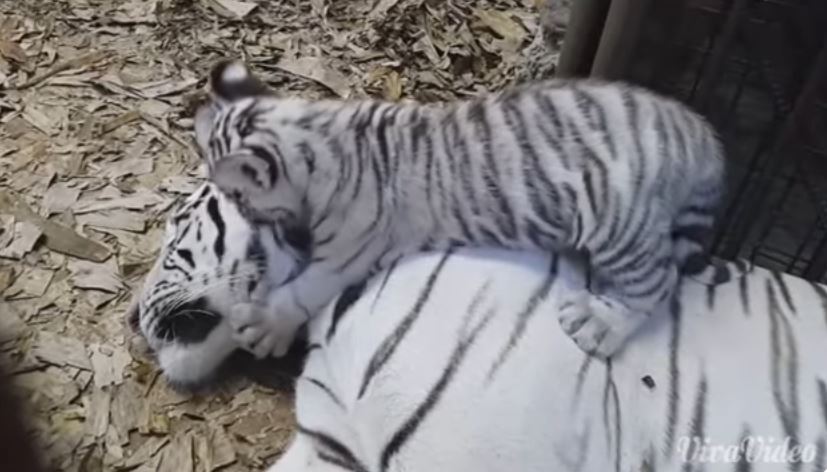 In a heartwarming yet humorous scene straight out of a wildlife documentary, a playful white tiger cub was recently caught on camera pestering its mother while she tried to take a much-needed nap. The footage, which quickly went viral, shows the curious and energetic cub climbing, pouncing, and nipping at his exhausted mother in an endless attempt to get her attention.