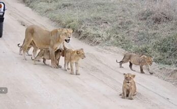 In the golden grasslands where the Nharhu Pride roams, a tender moment unfolds that captures the fragile beauty of life in the wild. A little lion cub, still unsteady on …