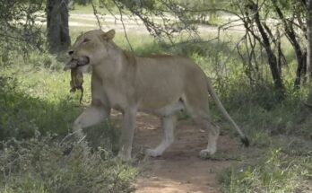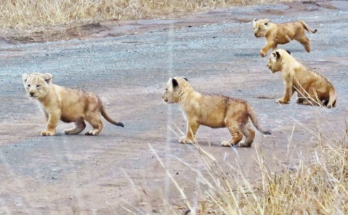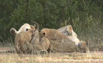 Cute Lion Cub Playing With Father’s tail Read MoreIn a heartwarming scene filmed in South Africa’s Kruger National Park, a group of adorable lion cubs is seen following closely behind their mother as she confidently leads them across …