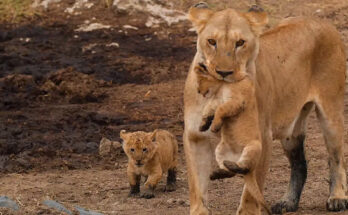 Two of the bravest brothers in the world, lion cubs. Regardless of her nagging, she was excited about the mud play. Read MoreIn the golden heart of the African savannah, where the sun casts long shadows and the tall grass sways gently in the breeze, a heartwarming scene unfolds. A tiny lion …