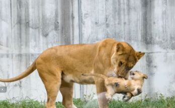 In the golden light of the savanna, an adorable lion mom finds herself in a daily challenge that every parent—human or animal—can relate to: keeping up with her playful cub. …