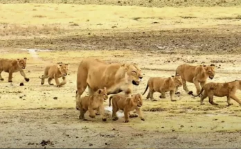 Seven lion cubs walking in unison, closely guided by their powerful and watchful mother—what an absolutely breathtaking sight! This kind of moment captures the raw beauty and emotional depth of …