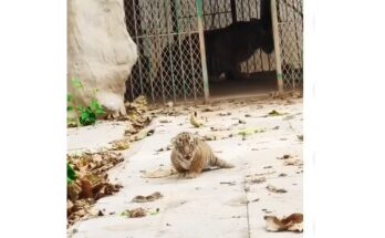 Not far behind, the mother lion emerged — alert, powerful, and majestic. With the grace and confidence of a seasoned protector, she responded immediately to her cub’s calls. The moment she reached the tiny lion, she gently nudged and licked it, reassuring the little one with her presence. It was a touching reminder of the deep bond between mother and cub in the wild.