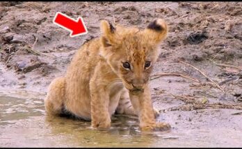 In the heart of Mikumi National Park, Tanzania, an extraordinary moment unfolded — a newborn lion cub, barely a few days old, was seen stumbling through the tall golden grass, calling softly as it searched for its mother. The tiny cub, still unsteady on its feet, was a picture of vulnerability and curiosity, a rare and heartwarming sight for those lucky enough to witness it.