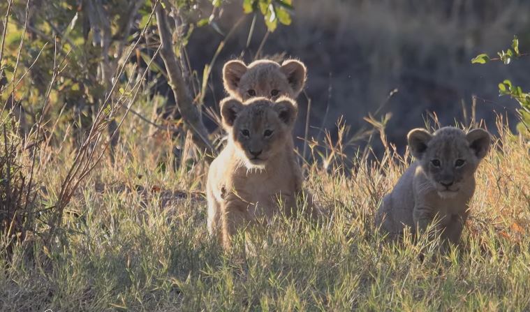 Incredibly cute lion cubs waiting for mom’s return from hunt