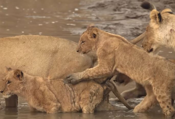 A shallow stream may seem harmless to most animals on the savanna, but for a family of lions, even a simple crossing can become a life-or-death trial. The water that blocks their path is murky and unpredictable, and beneath its calm surface lurk crocodiles waiting for the smallest mistake. For the lion cubs—still young, still learning, and still unsure of their place in the world—this challenge is far more daunting than a simple swim.