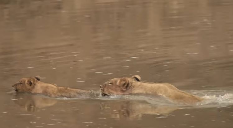 Some cubs cross quickly, paddling with surprising confidence. Others struggle, swallowed by uncertainty and the fear of the unseen. Yet with the guidance of their mother and the unity of the pride, they fight onward. Every step, every breath, every leap through the water shapes who they will become.