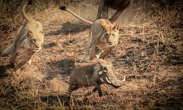 A typical hunt begins with the lionesses—often the main hunters—spreading out silently. When a warthog is spotted, one lioness may initiate the chase while others block escape routes. The hunt can be over in seconds if executed perfectly. The powerful swipe of a lion’s paw or a sudden leap can bring down the warthog before it can react.