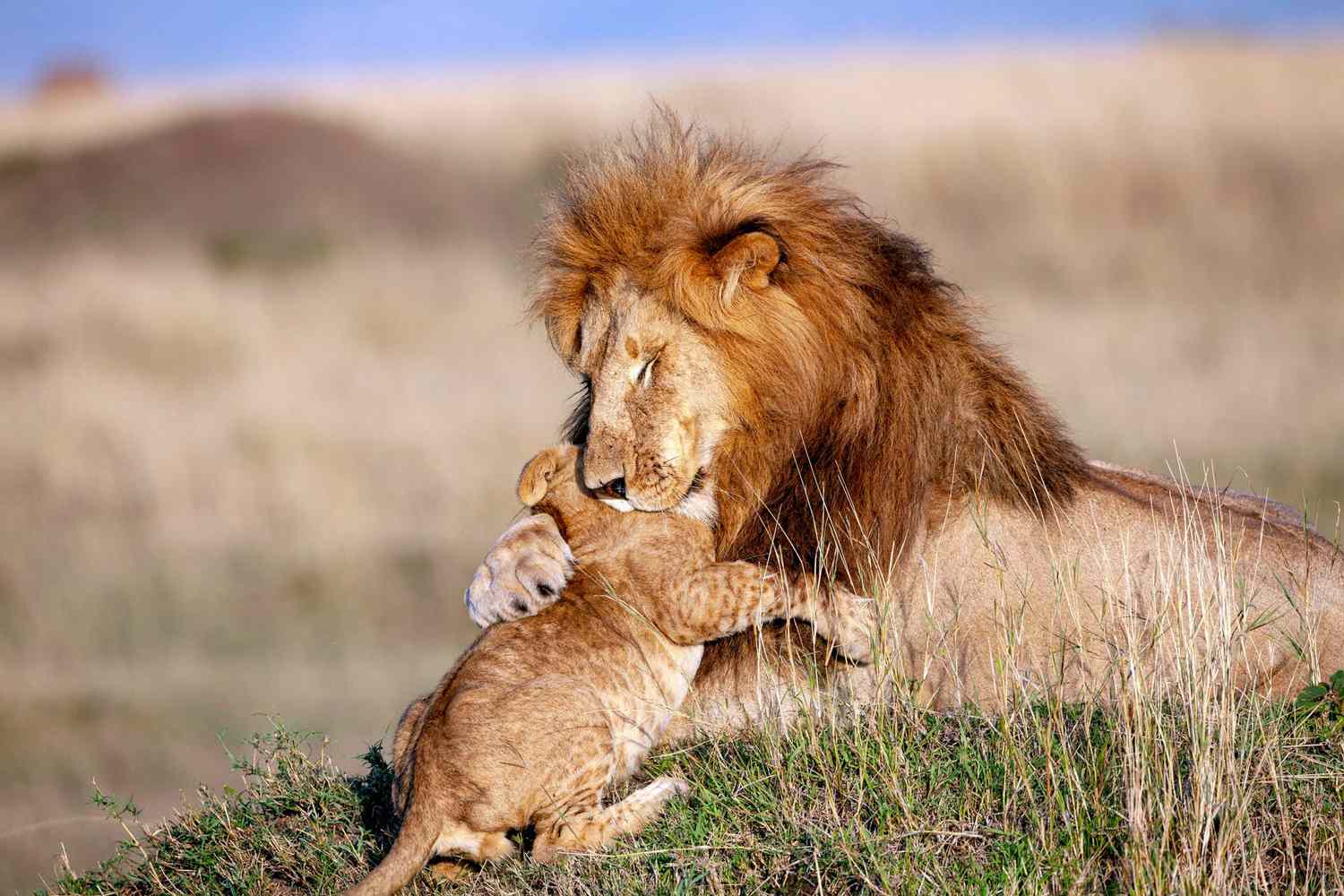 In the heart of the African savannah, a rare and tender moment unfolded that left even the most seasoned wildlife experts in awe — a male lion gently embracing his newborn cub for the very first time. Unlike the typical image of lions as fierce and territorial kings of the wild, this touching scene revealed a side of the animal kingdom we rarely witness: raw emotion and parental love.