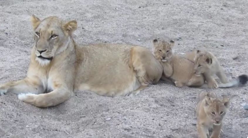 Every playful pounce is part of their growth. As the cubs chase each other around their mother, they practice stealth, speed, and teamwork, all of which they will rely on as adults. Even so, this time is not only about learning. It is also about bonding—strengthening the emotional connection between the lioness and her young. Her low, rhythmic purring reassures them, reminding them that they are safe.