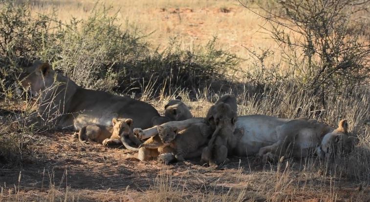 You can tell the bond is strong. One mom patiently lets the cubs climb all over her, while the other keeps watch, making sure no curious cub wanders too far. There’s so much love and teamwork in the way they care for this playful little pride.