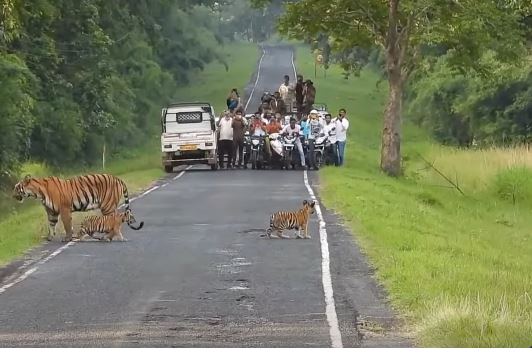 This scene is a reminder of how roads and development often cut through critical wildlife habitats. While such sightings can be thrilling for tourists or travelers, they also underscore the risks animals face from traffic and habitat fragmentation. Many forest departments now install warning signs and speed bumps in these areas to protect these magnificent creatures.