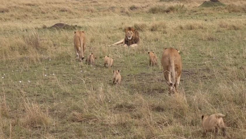 The lionesses, sisters by blood and bond, walked side by side. Their cubs, still unsure of the world, followed closely, their tiny roars barely louder than whispers. Each mother’s amber eyes flicked across the horizon, scanning for the familiar, powerful silhouette that ruled this part of the pride’s territory. They knew the importance of this moment — it was more than a family meeting; it was a rite of passage. The father’s acceptance would mark the cubs’ official place in the pride.