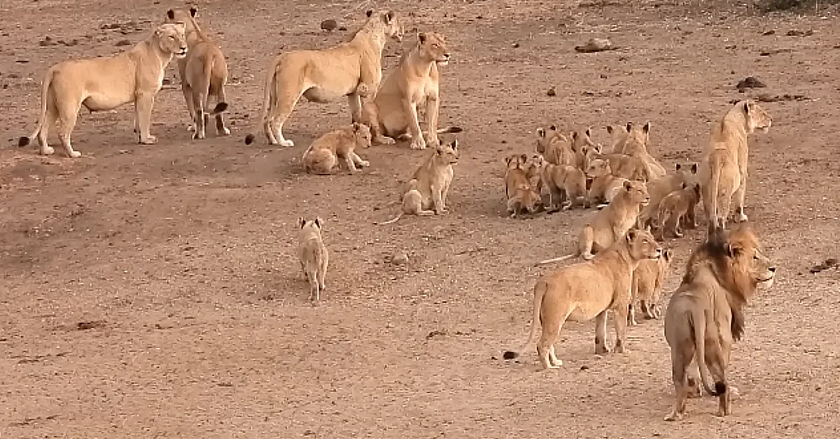 What a breathtaking sight—a massive lion pride gathered at Nsemani Dam, teeming with lion cubs! It’s one of those rare, magical moments in the wild that leaves you in absolute awe.